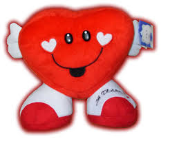 pelúcia em forma de coração, 01 buquê com 06 rosas vermelhas.